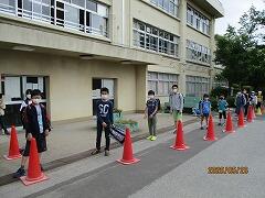「三密」にならないように,各学年のお迎え準備もバッチリです。