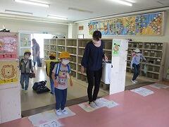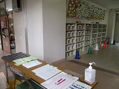 ★図書室でも,対策をします。貸し出しの際の待機の足型,返却した本は消毒して2日間ほど置いてから書庫に戻します。