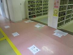 ★昇降口の外では,前の人との間隔をとって待ちます。