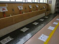 流しは1個おきにつかいます。混んでいるときは,待機の足型で待ちます。