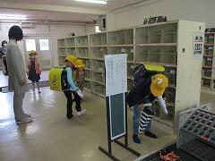 ★昇降口の中では,靴箱にたくさんの人がいたら足型のところで待ちます。