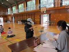 2年生から6年生は,待っている時のソーシャルディスタンスも身につき,一人一人担任の先生に近況報告をしたり,お家でがんばった課題の提出をしたりしました。