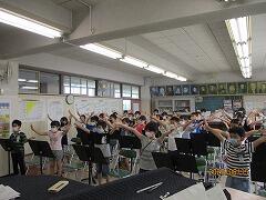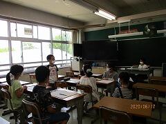 また,少人数であれば,子どもたちがビニールカーテンの内側から演奏をしたり歌ったりすることができます。今日は4年生が鑑賞の授業をしていました。