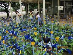 青々とした ミニトマトもたくさん なっています。観察日記にも 取り組んでいます。しゅうかくした やさいはじゅんばんに 持ち帰ります。お楽しみに!!