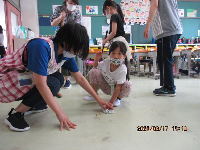 初の委員会活動、6年生に教えてもらいながら活動しています。