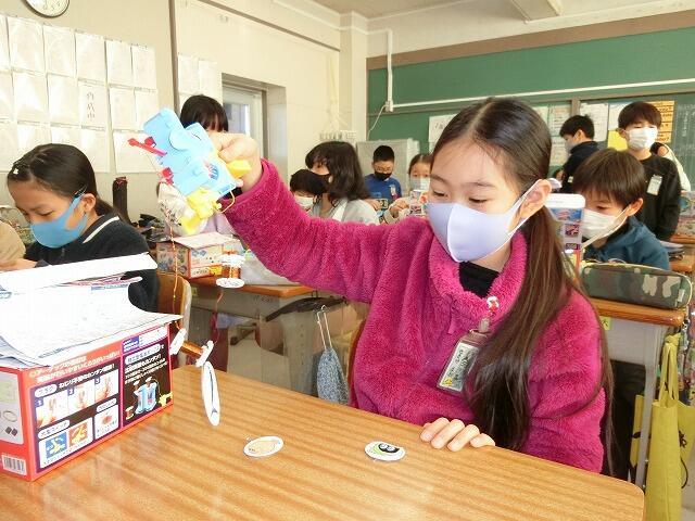 何人かで集まって,競争して遊ぶ子がいたり,「風に向かって飛ばすと面白いんだよ。」と報告してくれる子もいたりしました。