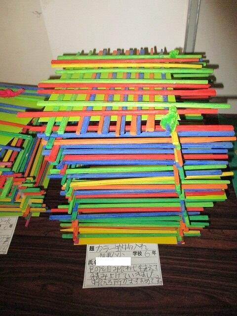 1人2作品で,工作や絵,書きぞめ,家庭科作品など,色々な作品を展示しています。