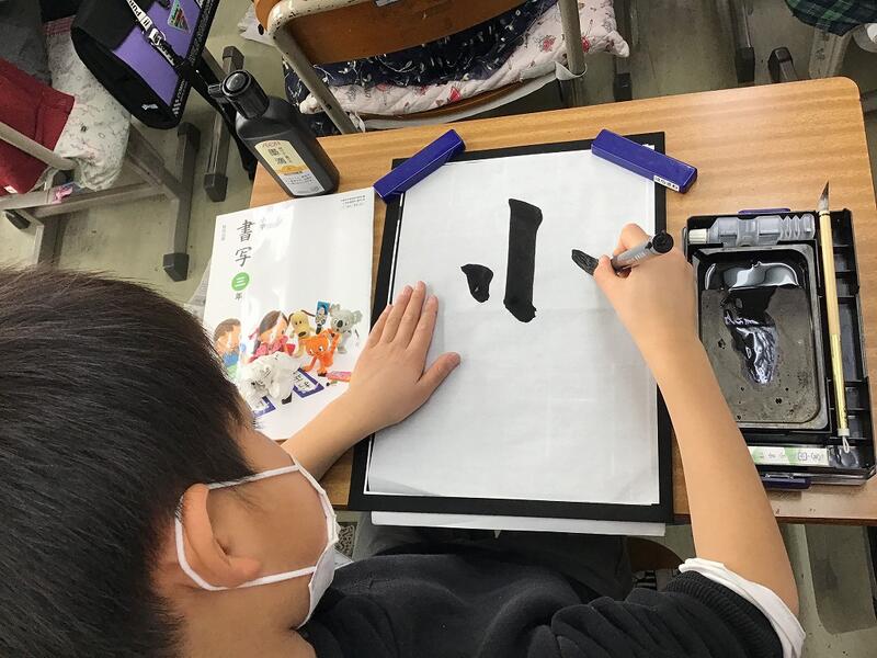 はねの形に気を付けて,太く大きく書くよう頑張っていました。