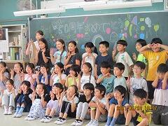 昨年は,航空写真を撮りましたが,今日は,校舎4階から子どもたち全員の顔が見える全校写真と,クラスごとの写真撮影です。