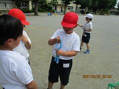 個人差はありますが,6歳くらいの子どもたちにとって,縄跳びをするということはなかなか難しいことです。「おおなみ・こなみ」で縄を跳び超えることを体感したり,「ぴょんぴょん跳び(いわゆる1回旋2跳躍)」から練習したりするのですが,1回旋1跳躍を楽しそうに跳んでいる子がたくさんです!幼稚園で体験してきたのでしょうか?駆け足跳びや,あや跳びをしている子もいます。びっくりしたなぁ。