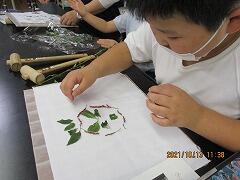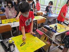 ひまわり学級の子どもたちは,用務員の後藤さんが先生となって,「たたき染め」に挑戦していました。木づちも上手に使っていましたよ。詳しくは,別記事で後ほどお伝えします。