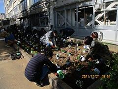 そんな中,落ち葉掃きと,秋から春に学校を彩る花の定植のボランティア活動が行われました。