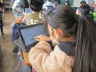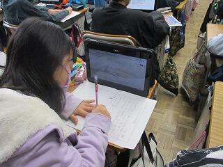 4年生は,作文に奮闘中です。「自分の成長を振り返って」という内容です。それぞれ,タブレットに取材したものを書き溜めています。それをもとに作文用紙に書き進めていました。取材内容を見せてもらったのですが,これがとてもよく取材されていて感心しました。新聞記者や雑誌の記者が記事にまとめていくってこういう感じなのでしょうね。