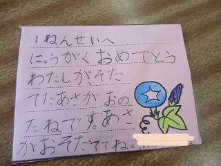 1年生は,4月に入学してくる1年生にプレゼントする自分たちが育てた「アサガオの種」を袋詰めし,お手紙を書いていました。ひらがなが上手でびっくりです!
