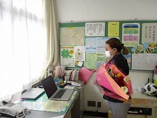 10人の先生方とお別れをしました。一人ずつお別れの挨拶のあと,児童会から感謝の言葉でお見送りしました。