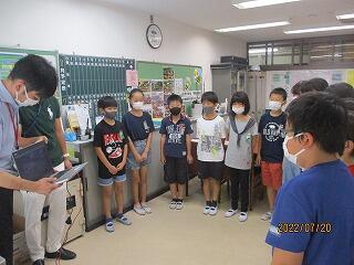 校歌の伴奏も指揮も校長室から生配信です。校長先生からは,「いい1学期でしたね。42日間の夏休みを安全に楽しく過ごしてください。2学期は,全校の力と心を1つにして,運動会や歌声発表会をがんばりましょう」」という話がありました。