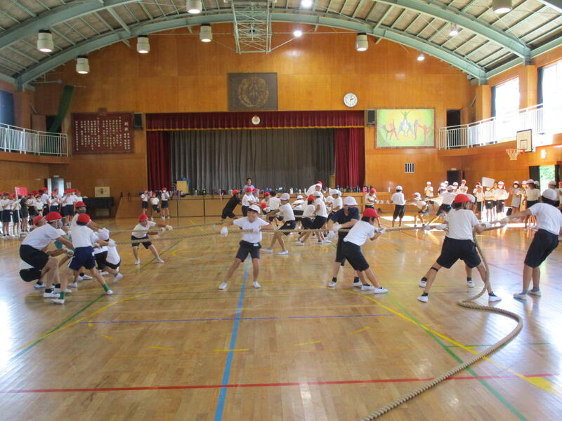 「なにごとだ!」と思い駆けつけてみると,5,6年生が運動会に向けて綱引きの練習をしていました。