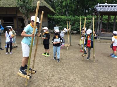 「これはどう使って遊ぶんだろう…」「屋根から草が生えてるよ!!」「昔の服はわらだからチクチクするね!」など,沢山の発見がありました。