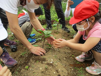 子ども達は畑作り,種や苗植え,水やり,雑草ぬき,石とりなどの畑仕事をしながら,日々野菜の成長を観察しています。