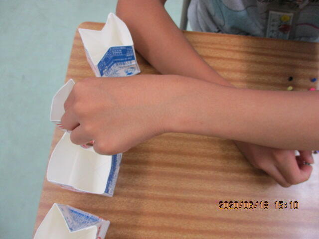 自立活動では、指先を使い、集中して行うビーズの色分けも行いました。