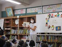 学校図書館指導員の先生が3年生に読み聞かせとペープサートをしてくださっていました。
