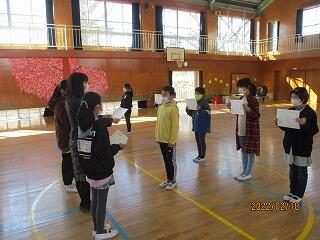 6年生を送る会では,児童会役員の引継ぎ式も行います。新しく児童会役員に選ばれた4年生と,来年度最高学年になる5年生に任命書を渡しました。今回の「送る会」も中心になって企画運営をしています。6年生からのバトン,しっかり受けとりましたね!
