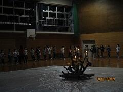 自然御家の食堂で早めの夕食をいただき,最後の活動はキャンドルファイヤー。
