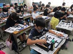 4年生は,書写の学習で毛筆に集中していました。今日は青書の日です。どの児童も丁寧に作品を仕上げていました。