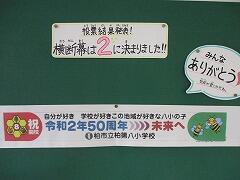 そして,柏八小50周年企画第3弾の,「50周年横断幕投票」の結果は,こちらのデザインに決定しました!投票をしてくれたみなさん,ありがとうございました。本物が出来上がってくるのが楽しみです。