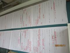 5年生の教室には,国語の学習でみんなで話し合った物語の読み取りが貼ってありました。分散登校なので,同じ授業を2日間行います。上がAグループで下がBグループです。担任の先生が,同じ授業をしても,読み取りが微妙に違って面白いと言っていました。