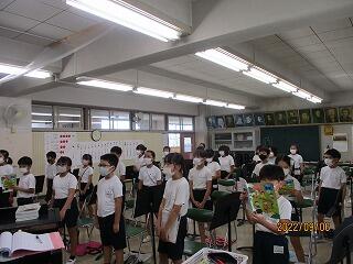 4月から身長伸び,体重も増えていて,ひとまわり大きく成長しています。中には3か月の間に3センチ以上も伸びている児童もいてびっくりです。きっと足のサイズも大きくなっていますね。先日の避難訓練でも子どもたちに話しましたが,非常時の安全のためにも上履きをきちんと履かせたいです。