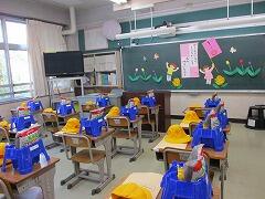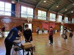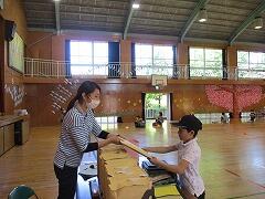 2~6年生は,「3密」ならないように,場所や時間を工夫して,各担任の先生から新しい教材をもらったり,家でがんばった課題を提出したりしました。