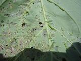 ③学校の畑にうえたキャベツに,モンシロチョウのよう虫(あおむし)がたくさん見つかりました。理科の教科書の写真と見くらべてみよう。