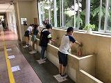 5年生の社会では地球儀を使って世界の学習をします。例年ならグループごとに1つの地球儀を囲んで話し合いながら理解を深めるのですが,順番に一人ずつ使い,使った後は手洗いです。