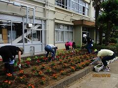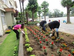 今日は,ボランティアの皆さまが,花壇に花の苗を植えてくださいました。