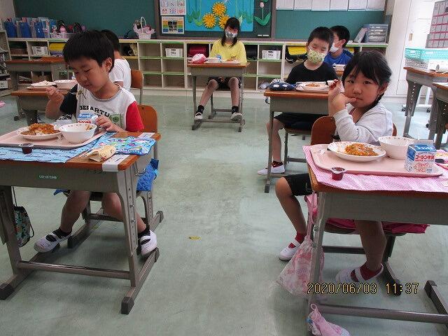 4年生 分散登校 給食風景