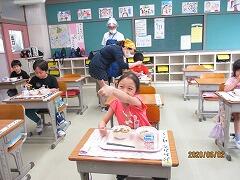 給食は交流学級で食べました。
