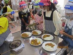 マスクにフェイスシールドを重ねることによって,調理実習ができるようになりました。自然体験教室では,野外炊飯をします。おいしいカレーができるといいです。