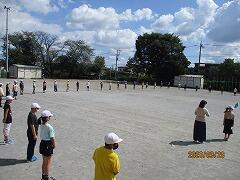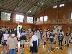 キャンプファイヤーでは,ダンスをしたり歌を歌ったりします。体育館でも充分な距離が取れないので,校庭で練習をしています。次回は,校庭でこのように大きく広がって「燃えろよ燃えろ」や「遠き山に日が落ちて」などをマスクをはずして歌いたいと思います。