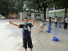1年生は,春から育ててきたアサガオの咲き終わった『つる』を支柱からはずしました。丁寧に取り外して,アサガオのつるのリースを作ります。