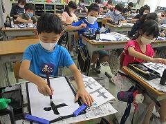 4年生は,書写の学習で毛筆に集中していました。今日は青書の日です。どの児童も丁寧に作品を仕上げていました。
