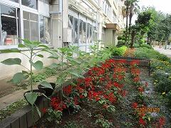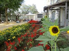 職員室前の花壇のひまわりが咲きました!10月のひまわりです。