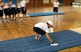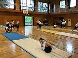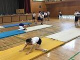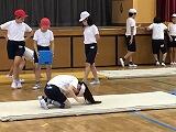 マット運動の練習風景です。各クラス,3つの技を組み合わせて学習の最後に発表する予定です。iPadを班ごとに使い,友だちが技(前転・後転・開脚前転・開脚後転・側転等)を練習している様子を撮り,アドバイスをしたり自分の技に生かしたりしま