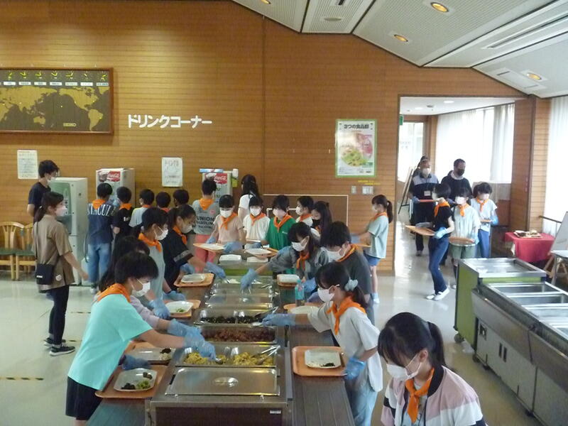 2日目も朝から元気に活動。朝食はバイキング形式で食べ放題でした。体験活動では、農業体験や釣り、ジャム作り等をして楽しみました。