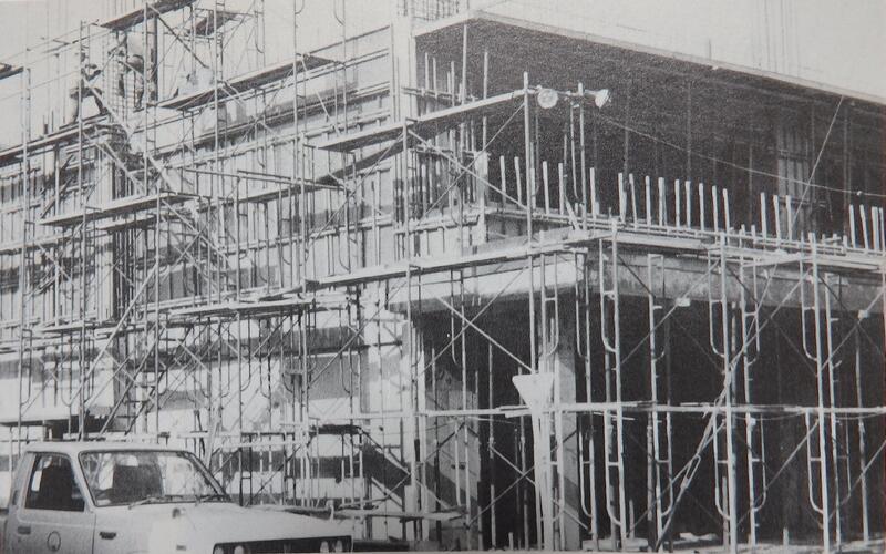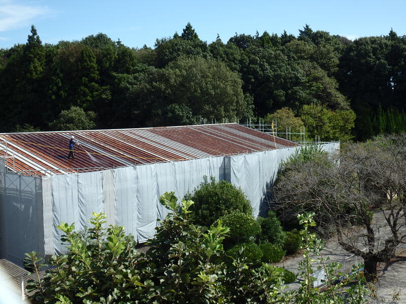 錆を落とし、全体を洗浄し、錆止めを施し、塗装をしていきます。天候に影響される工事の為、秋雨が今後心配されますが、11月の創立50周年記念式典までには完了する予定です。
