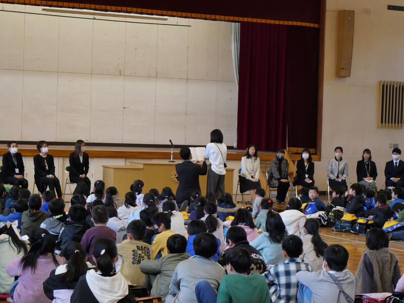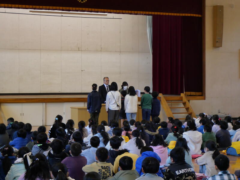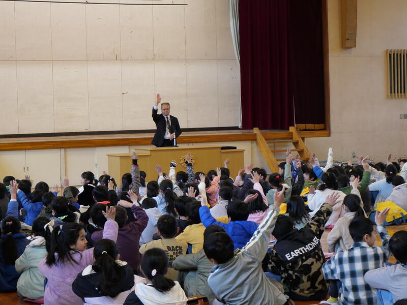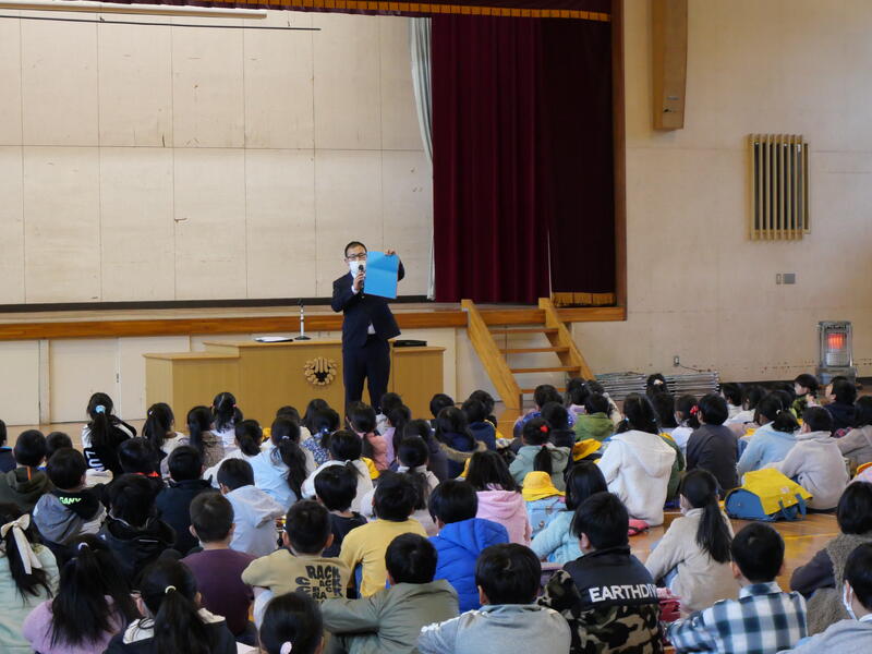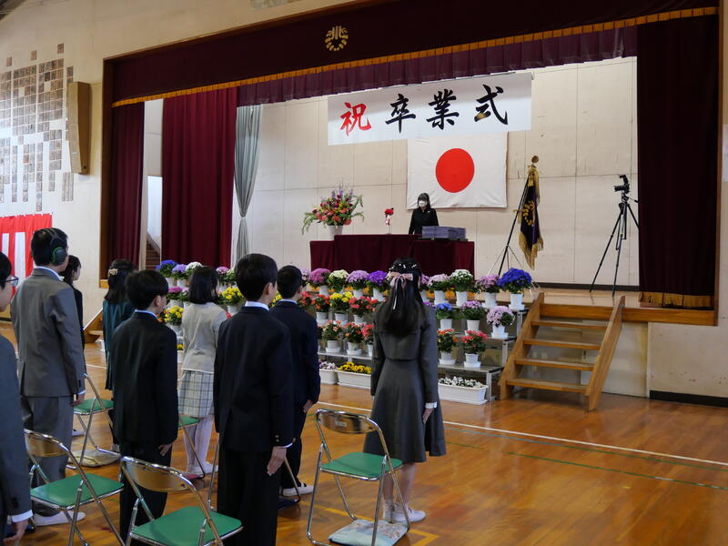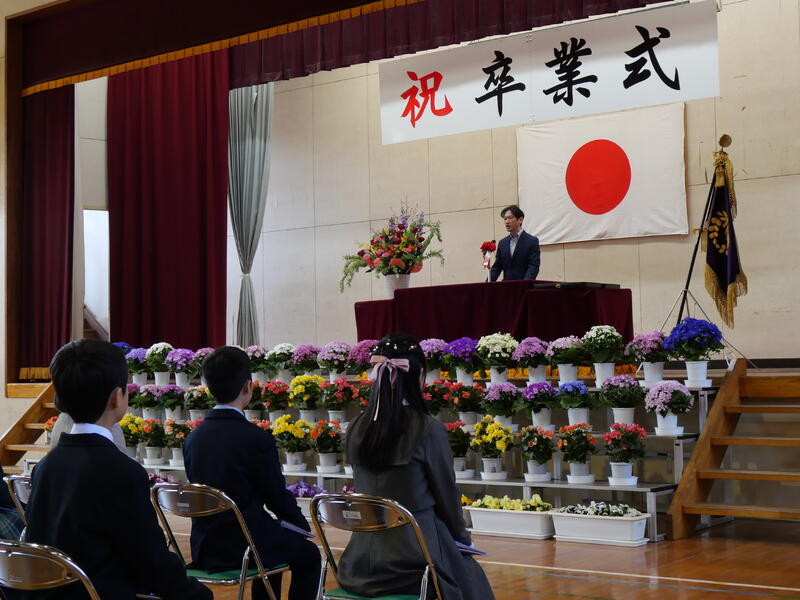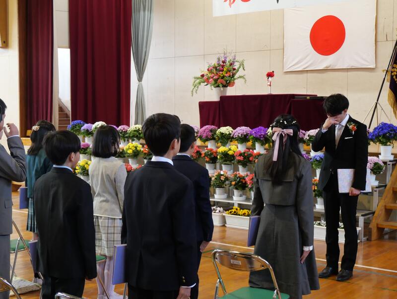 また、頑張ったことやできるようになったことを代表の藤っ子が発表してくれました。生徒指導主任の先生からは、春休みの過ごし方で気をつけてほしいことについてお話がありました。修了式に続いて辞校式。