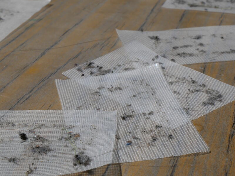 机や椅子の脚の裏側には、ほこりがつまっていたので、きれいに掃除をしていました。