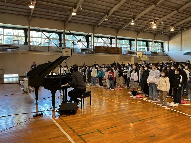終業式後には、全校で「We Are The World」を合唱しました。校長先生のピアノ伴奏に合わせ、きれいな歌声が体育館に響き渡りました。全学年が英語の歌を歌える姿に、改めてふじっ子の素晴らしさを感じました。