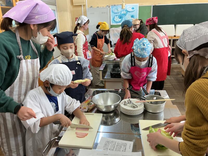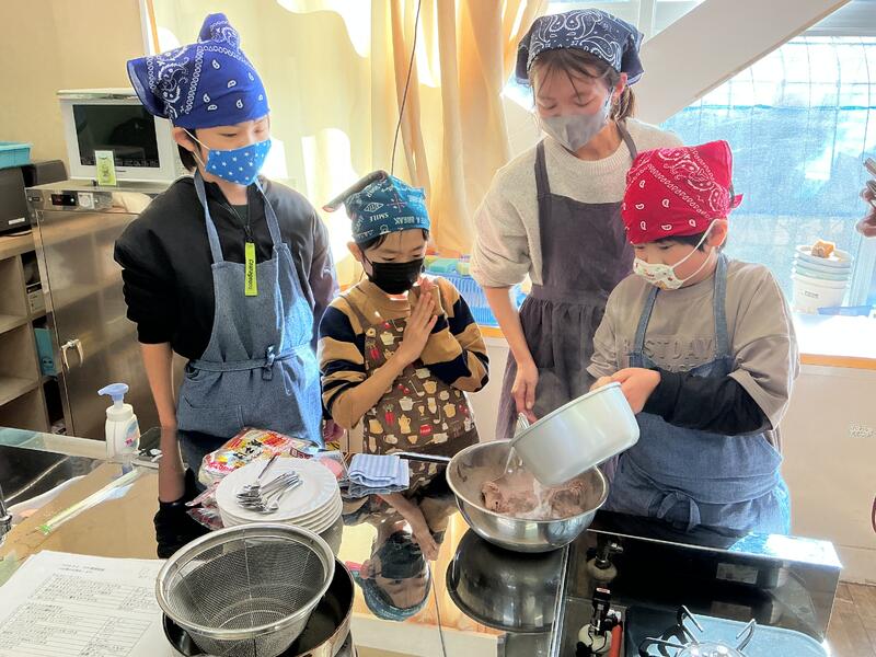 そのあとは、家庭科室に移動して、お待ちかねの調理実習!