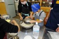 5年生のミシンを使った学習活動では、サポートの保護者の方も入り、効率よく作業を進めていました。